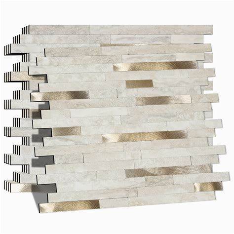 Eazart Peel And Stick Backsplash For Kitchen, Self-Adhesive Metal Gold Beige Marble Subway Tiles Decorate Kitchens Bathrooms Laundry Fireplaces, 10-