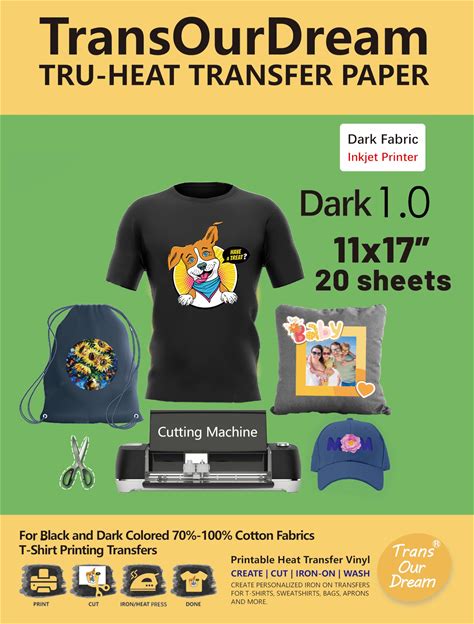 Transourdream Tru-Heat Transfer Paper For Dark Fabric (500 Sheets, 8.5X11") Iron On Transfers For Tshirts Printable Heat Transfer Vinyl For Inkjet Printer (D1-500)(Dark/10 Sheets)