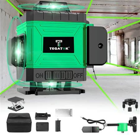 16 Lines 4D Laser Level 360° Self Leveling Rotary Cross Line Measure W/2 Battery. Huliou. Green. Laser Measuring Tools.