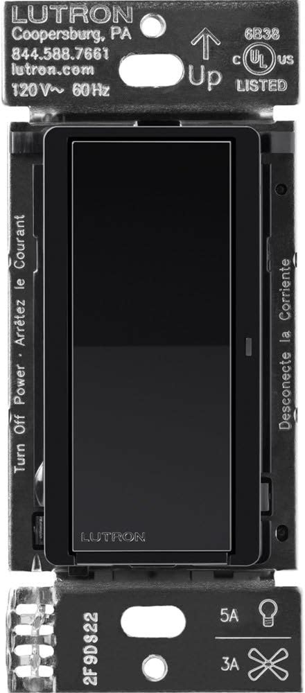 Lutron Claro Smart Light Switch For Caseta Lighting, For LED Lights, Fans, 5 Amp, Single-Pole/3-Way, Neutral Required, DVRF-5NS-BL, Black
