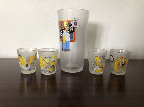 Lot Of The Simpsons Homer Frosted 4Shot Glasses 2000 Vtg 1st Edition +1Big Glass. The Simpsons. Multicolor. Shot Glasses.