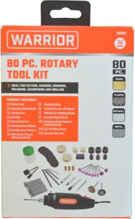 Warrior 58999 Rotary Tool Kit - 0.7 Amp - 80-Piece Accessory Set - 16,000 RPM