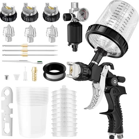 VEVOR HVLP Spray Gun, High Performance Automotive Paint Gun With 1.3/1.7mm Stainless Fluid Tip Sets, 1000Cc Cup, MPS Adapter And Air Regulator For Primer, Clear Top Coat, Touch Up(1.3Mm/1.4Mm/1.8Mm)