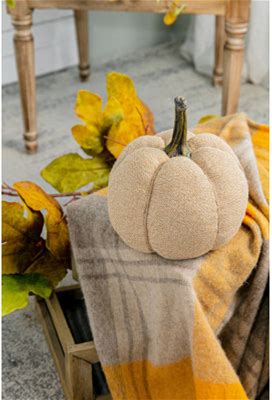 Ryan Fabric Weighted Pumpkins With Realistic Stems For Holiday Accents & Décor