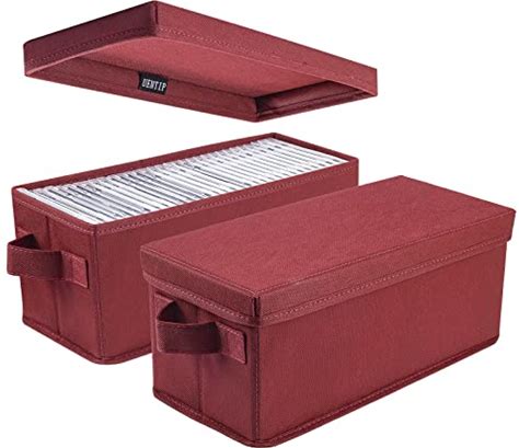 CD Storage Boxes - Pack Of 2 CD Case Holder - 13.2" X5.9" X 5.3", Container Holds 30 Cds In Full Jewel Cases, 60 Cds In Slim Cases, And 165 Discs In CD Sleeves - Black (2 Pack)(2Pack-Rose Red)