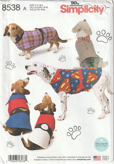 Simplicity 8538 Dog Coat Sewing Pattern, Three Sizes, Uncut