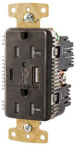Hubbell Usb20ac5wr Duplex Tamper Resistant 20A 125V Usb Port 5A5V Ac Brown