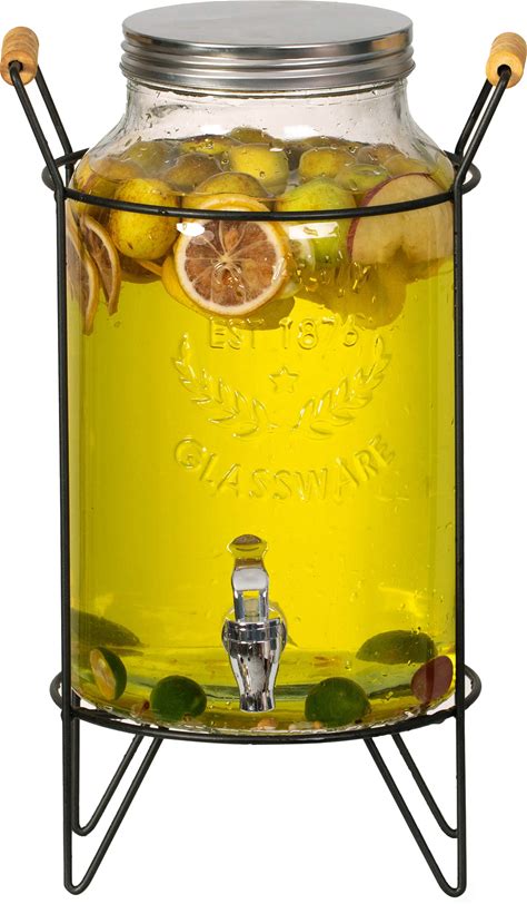 Gallon Glass Drink Dispenser With Stand And Stainless Steel Faucet, Perfect For Party Iced Tea, Lemonade, Juice, Water Gallon Glass Drink Dispenser Wi
