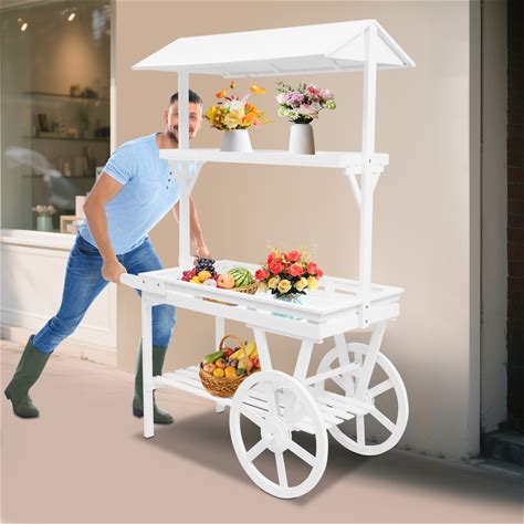 Retro Wooden Rolling Table Cart 2 Wheels Flower Display Stand Lemonade Tea Stall