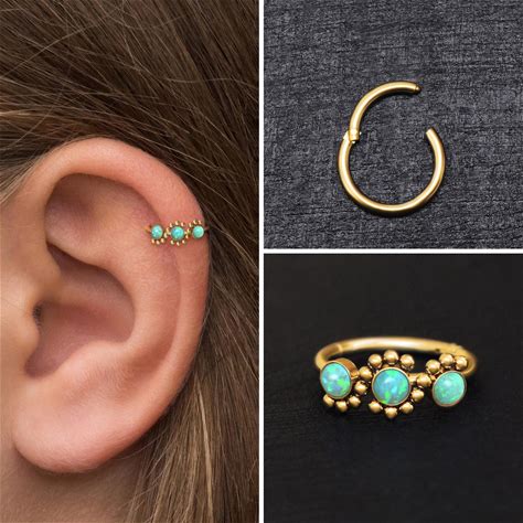 Surgical Steel Tragus Earring Hoop, Opal Cartilage Piercing, Rook Piercing, Forward Helix Piercing, Conch Piercing, Rook Clicker Hoop