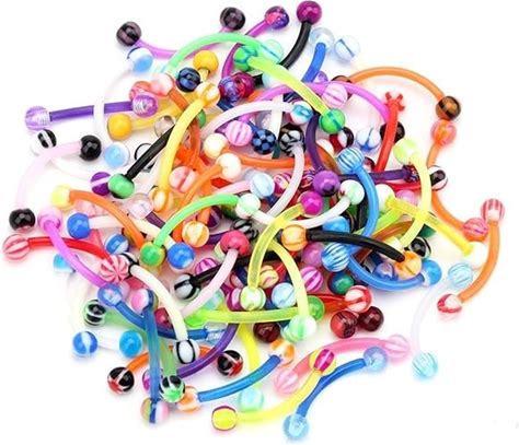 Colorful Ball Acrylic Flexible Curved Bar Eyebrow Rings Tragus Piercing Jewelry,