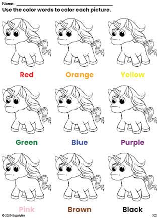 Unicorn Coloring Page And Color Worksheet For Preschoolers To Learn Colors, Printable PDF