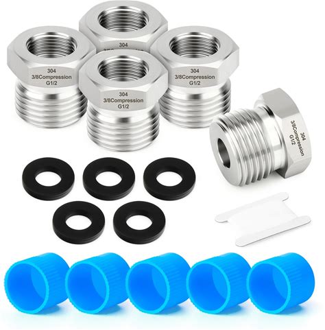 TAISHER 5PCS 304 Stainless Steel Reducer Water Hose Adapter 1/2" G Thread (BSP) × 3/8" Compression Pipe Fitting For Kitchen Bathroom Faucet Supply