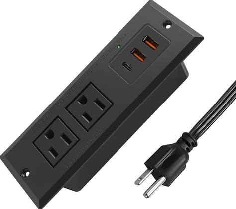 Recessed Power Strip With 20W USB-C Desktop Charge Station With 3 Fast Charging USB Ports Flush Mount Furniture Outlet For Conference Table Nightstand