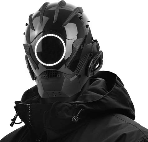 JAUPTO Pipehair Punk Mask Helmet,LED Light Futuristic Techwear Mask,Sci-Fi Full-Face Punk Helmet Costume Accessory (Blue)