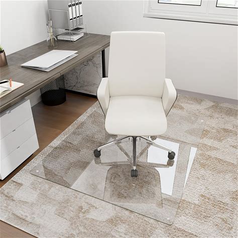 [Tempered Glass] 36" X 46" Glass Chair Mat, Heavy Duty Hard Floor Mat With Round Corner And Polished Edge, Office Chair Mat For Carpet Office Home