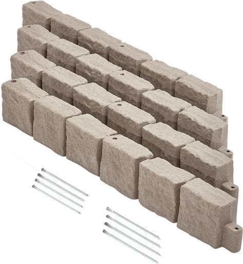 VEVOR Faux Stone Landscape Edging, No Dig Garden Edging Border, Flexible Blocks For Lawn Edging, Flower Beds, Driveway, Yards With 12 Spikes, 4 Pack