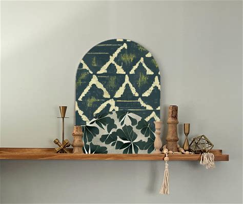 Modern Nature Inspired Layered Arch Wall Art. Eclectic Home Decor W/Dimensional Layers & Mixed Patterns. Green Shibori Art For Room.