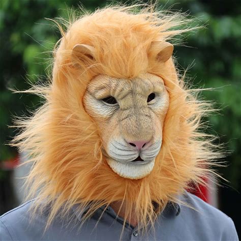 Adult Latex Lion Mask Soft Latex Funny Party Animal Masks Lion Hair Halloween Carnival Party Cosplay