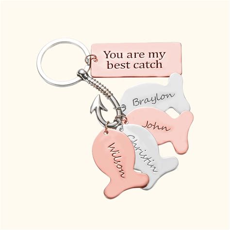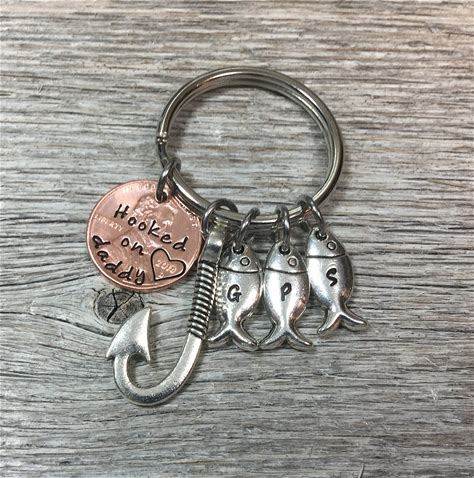 Fathers Day Gift Hook Keychain With Custom Fishs & Engraving