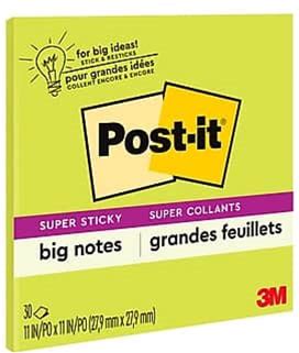Post-It® Super Sticky Big Note, 30 X Orange, 11" Flag/Note Width X 11" Flag/Note Length, Square, 30 Sheets Per Pad, Orange, Sticky, Removable, 1 Each - MMMBN11O
