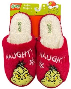 The Grinch "Naughty" Womens Christmas Slippers Faux Fur Red Size M