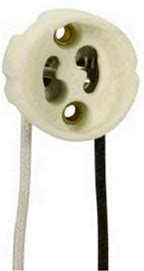 2-PIN G5.3G6.35 BASE HALOGEN SOCKET UP TO 75 WATT UP TO 250V WITH WIRE LEADS 8in LEADS OUT BACK At International Lighting