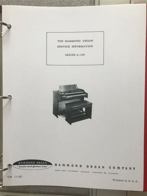 Hammond Organ Model A-100 GM 11-62 Print Service Manual. Hammond. Organs.