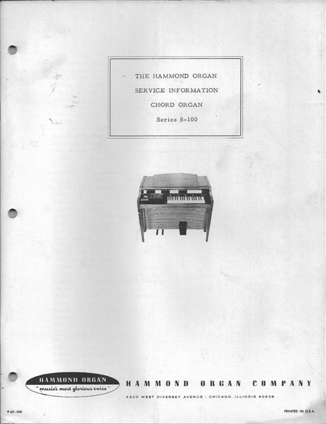 Hammond Chord Organ S-100 Series Service Repair Manual Schematics Wiring S100