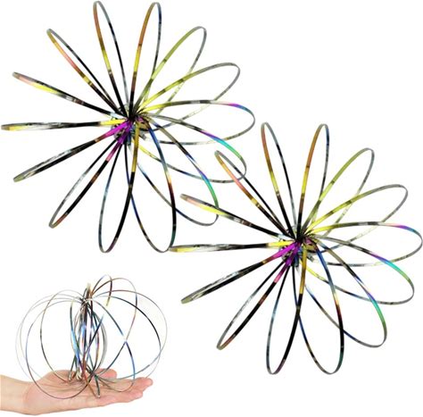 Mniimaluxe Pack Of 2 Flow Rings Toy, Loop Lasso, 3D Arm Spring Magical, Flow Ring, Stainless Steel, Multi-Sensor, Educational, Magic Flow Anti-Stress