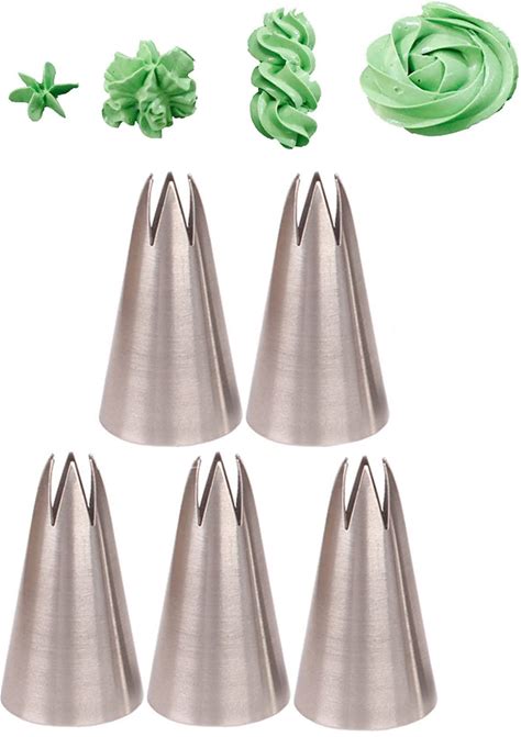 Suuker Large Piping Tips Set, Stainless Steel Cake Decorating Tips, 5 Pieces Frosting Icing Tips For Cake Decorating, Cupcakes, Cookie (1A 1E 1C 9ft