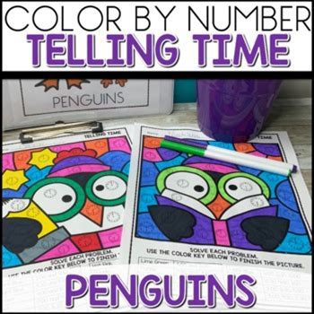 Telling Time Color By Number Coloring Worksheets Penguin Themed