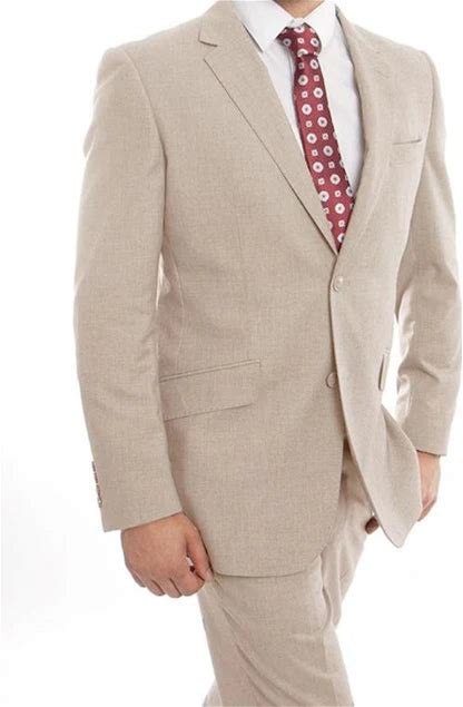 Men's Suits America Arezzo Collection 100% Wool Suit Modern Fit Italian Style 2 Piece Tan Solid-Brown 36-Regular-30-Waist