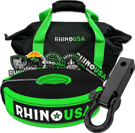 Rhino USA Heavy-Duty Recovery Gear Combos Off-Road Jeep Truck Vehicle Recovery, Best Offroad Towing Accessories - Guaranteed For Life (30' Strap + Shackle Hitch)