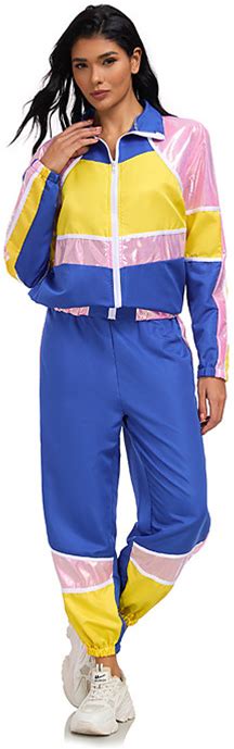 COREWO Womens 80S Tracksuit Set Retro Hip Hop Windbreaker Women Disco Tracksuit Sets Colorblock One Piece Outfits