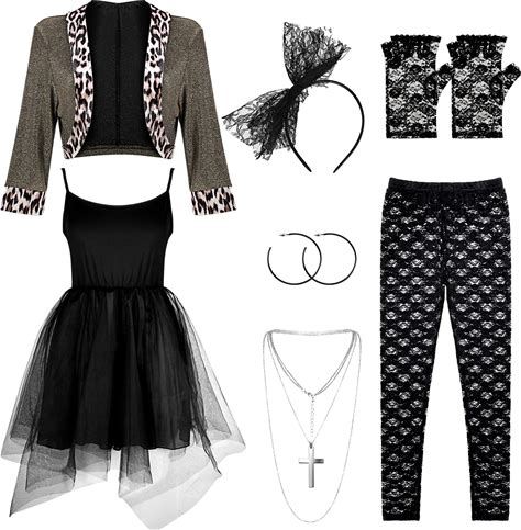 Boyiee Womens 80S Costume Set Dress Jacket Headband Earrings Necklace Lace Legging Gloves Halloween 80S Themed Costumes