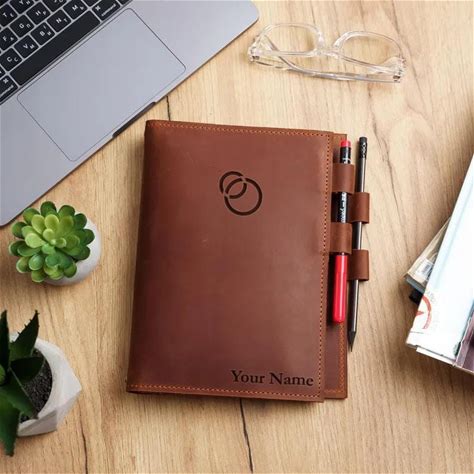 Custom Logo Notebook With Pocket, Corporate Notebook Cover, Logo Notebook With Pen Holder, Engraved Logo Planner, Refillable Business Gift