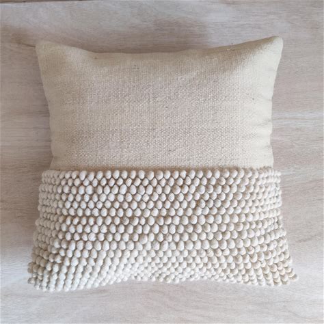 Ivory / Off White Chunky Loops Wool Hand Loom Woven 12X20, 14X20, 16X16, 18X18 , 20X20 Inches Decorative Throw Pillow Cover