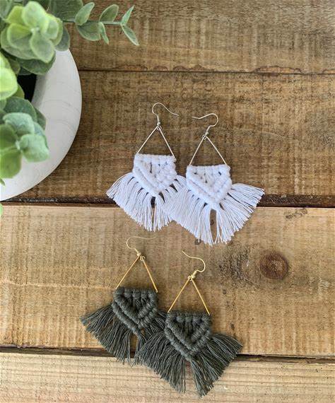 Earring Macrame Triangle Drop Fringe Earrings Handmade Macrame Cute Macrame Earrings Boho Chic Mothers Day Gift For Mom Teacher Gift