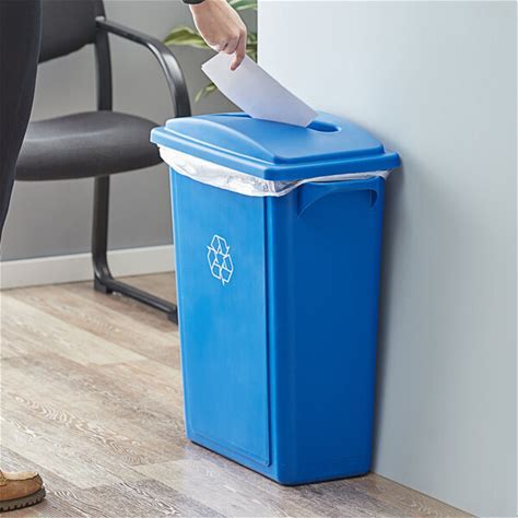 Lavex 16 Gallon Blue Slim Rectangular Recycle Bin With Paper Slot Lid