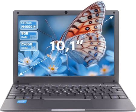 10.1-Inch Portable Mini Laptop Computer, Ddr4 8GB Ram, 256Gb Ssd, Celeron N4000, Built-In Webcam, Notebook With Wifi, Hdmi, Bluetooth, Type-C Charging