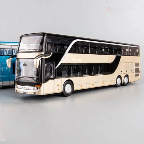 1:30 Scale Double-Decker Business Bus Model Toy Car Long-Distance Buses Sound Light Pull Back Models