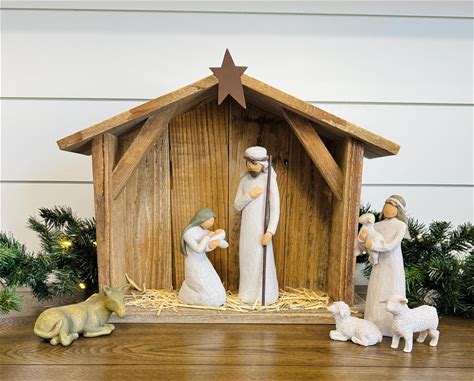 Barn Wood Nativity Stable, Wooden Manger, Creche, Set, Nativity Stable Only With Light, Compatible With Willow Tree Nativity Scene Display