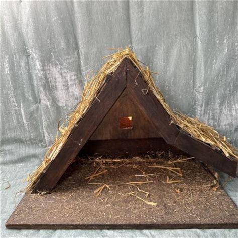 Large Handmade Plywood/Twig/Straw Creche Nativity Stable 18 Inches