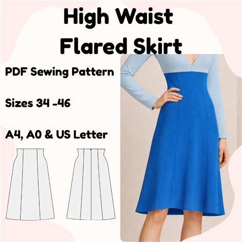 High Waist Panel Skirt Sewing Pattern PDF | Flared Skirt | Women Skirt Pattern | Sizes 34-46