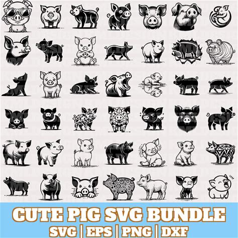 Pig SVG 16 Vector Clipart Bundle: Laser Engraving, Animal Print, Sublimation, DIY (Digital Download)