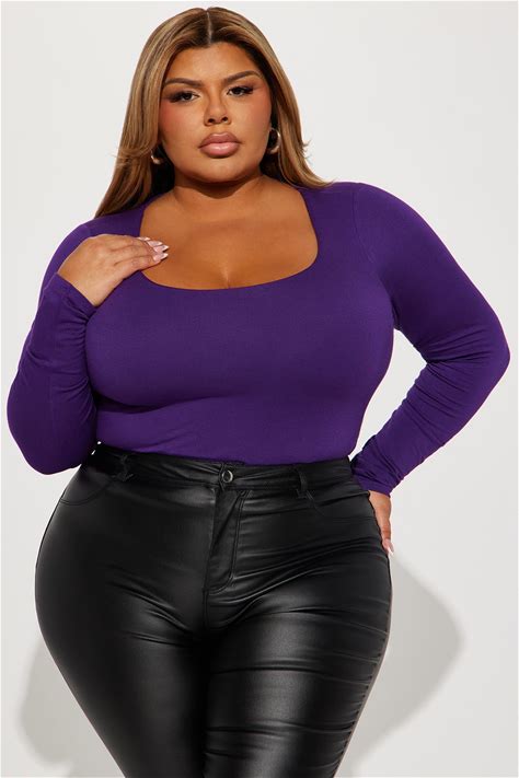 Plus Size Long Sleeve Bodysuit In Purple, Size 1X | Fashion Nova