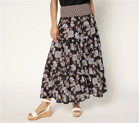 Susan Graver PURE Regular Printed Cotton Maxi Skirt, Size Medium, Black/Caramel