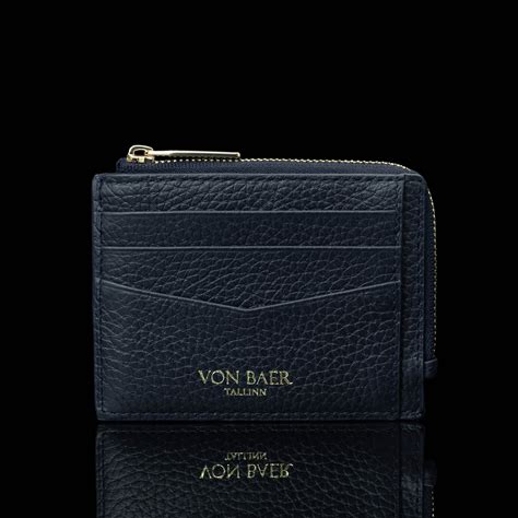 Luxury Full Grain Leather Zip Card Case For Women With RFID Protection, Navy Blue