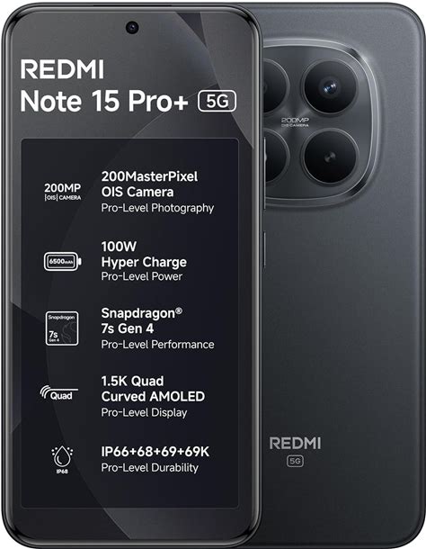 REDMI Note 15 Pro+ 5G (Carbon Black, 8GB+256GB) 200Masterpixel OIS Camera